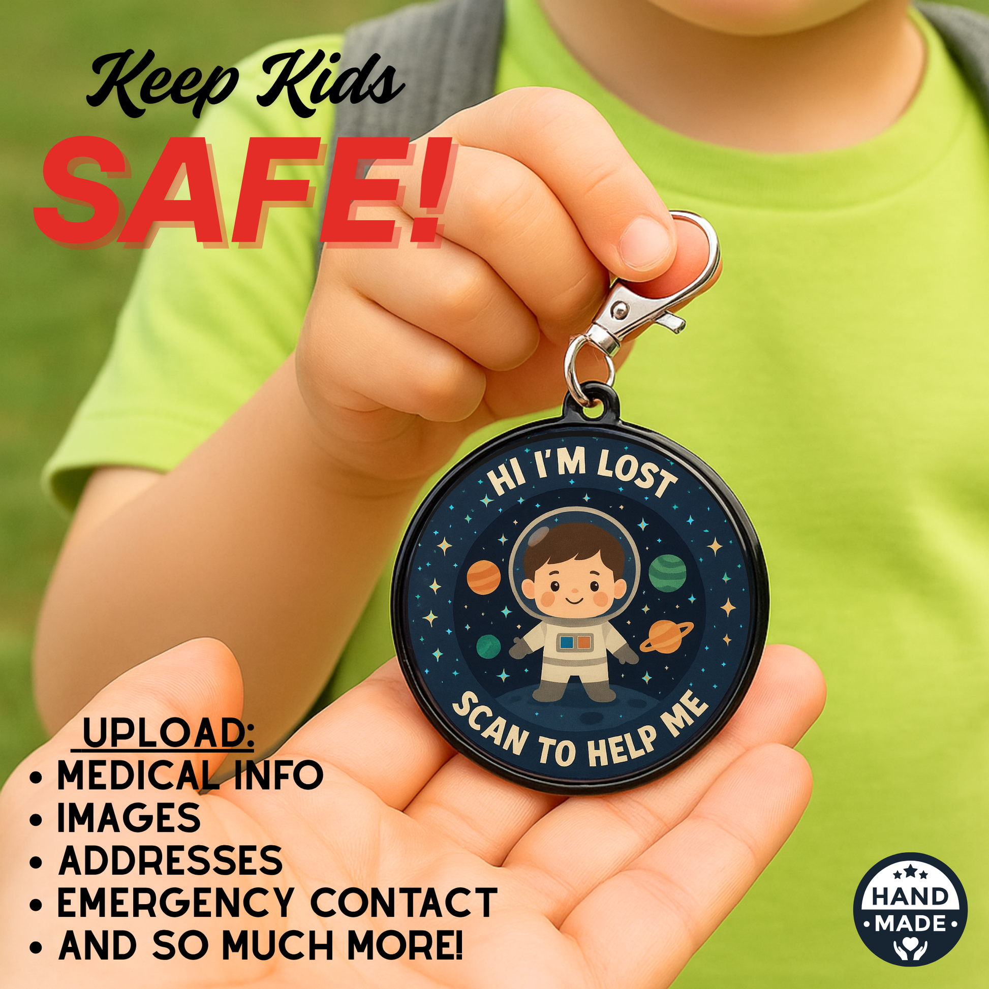 Astronaut In Space | In Case Of Emergency | Emergency Contact For Kids | Lost | Scannable NFC Keychain