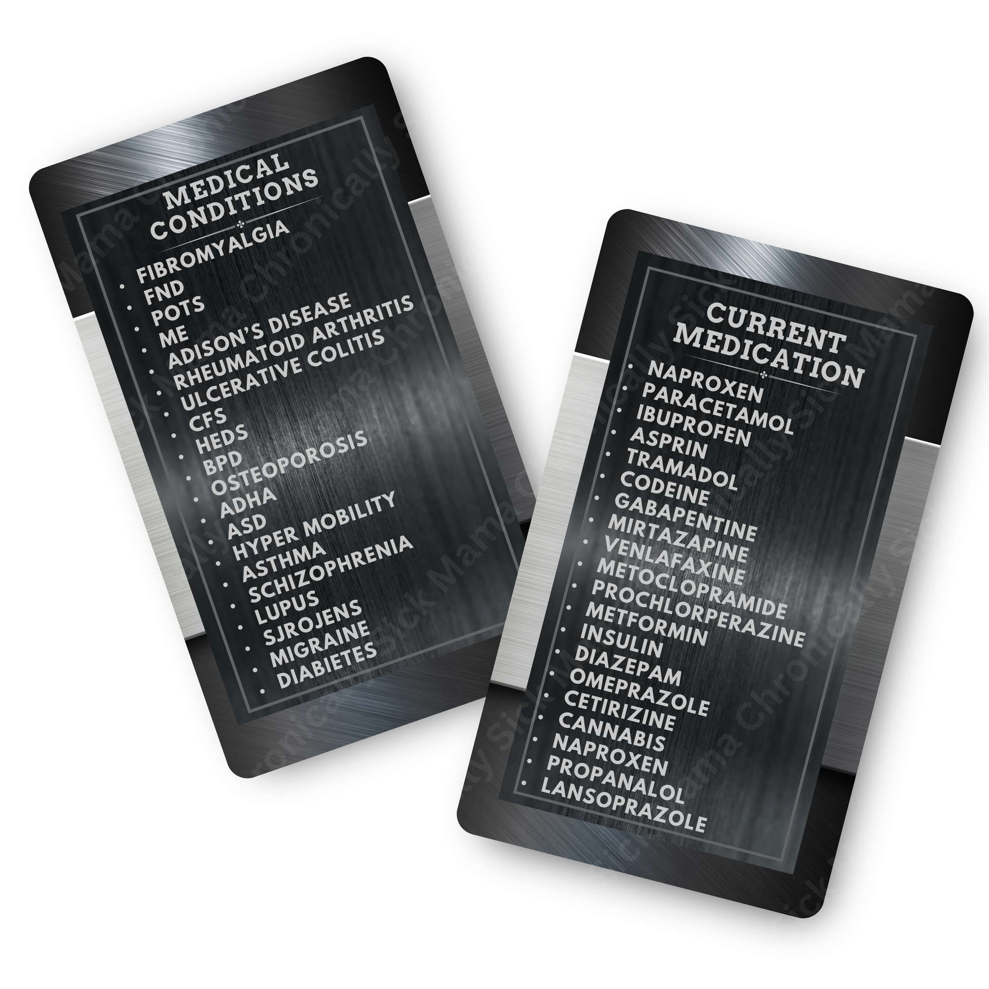 Black Steel | Medical And Medication Cards | List Your Medical Conditions And Medication And Never Forget Them
