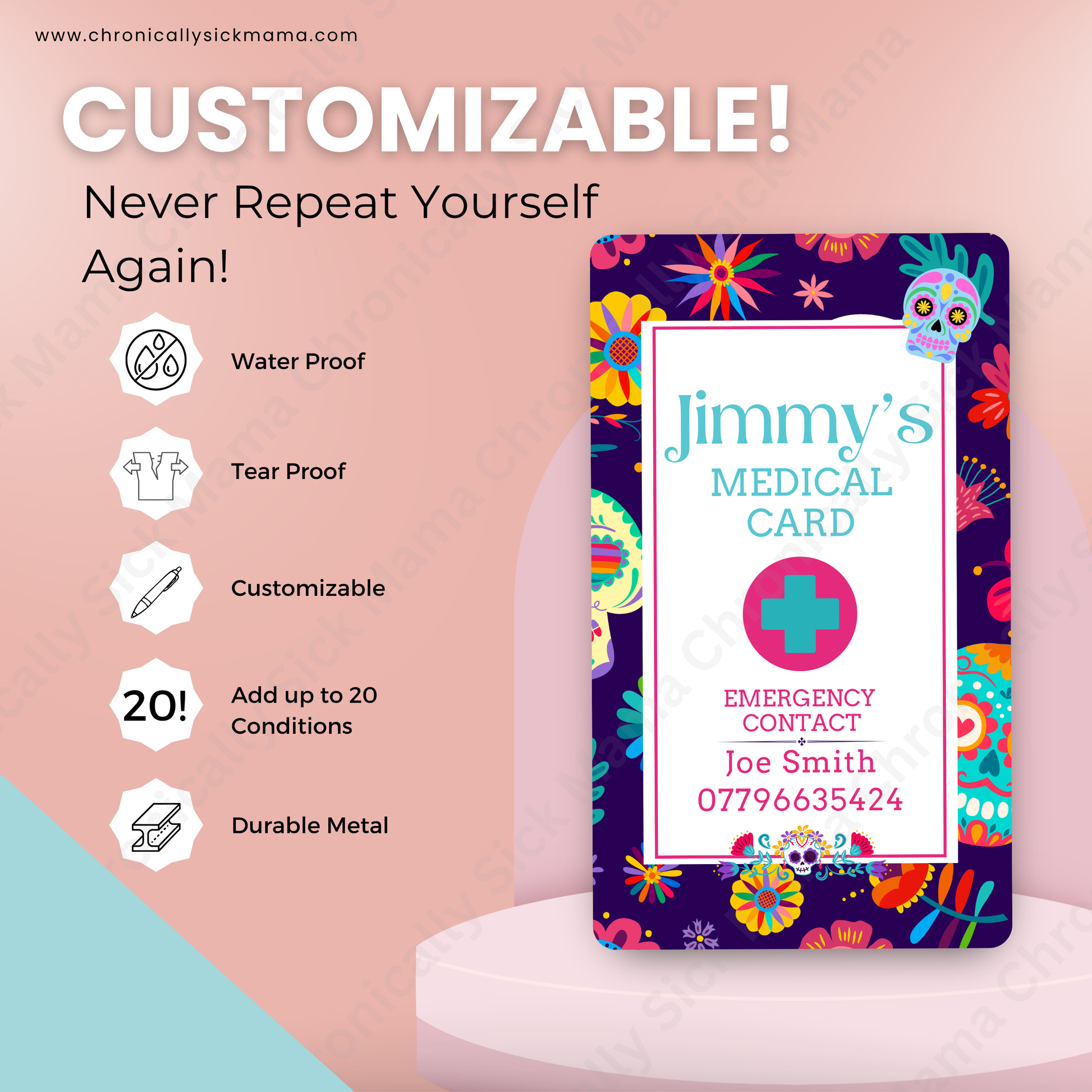 Day Of The Dead Candy Skull Design | Medical And Medication Cards | List Your Medical Conditions And Medication And Never Forget Them