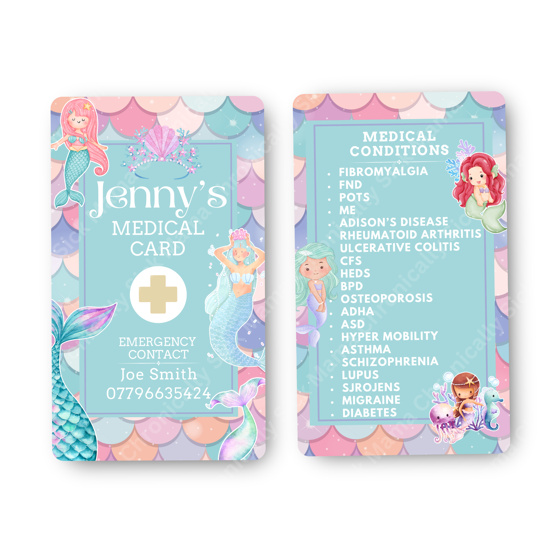 Kids Mermaid Princess Design | Medical And Medication Cards | List Your Medical Conditions And Medication And Never Forget Them