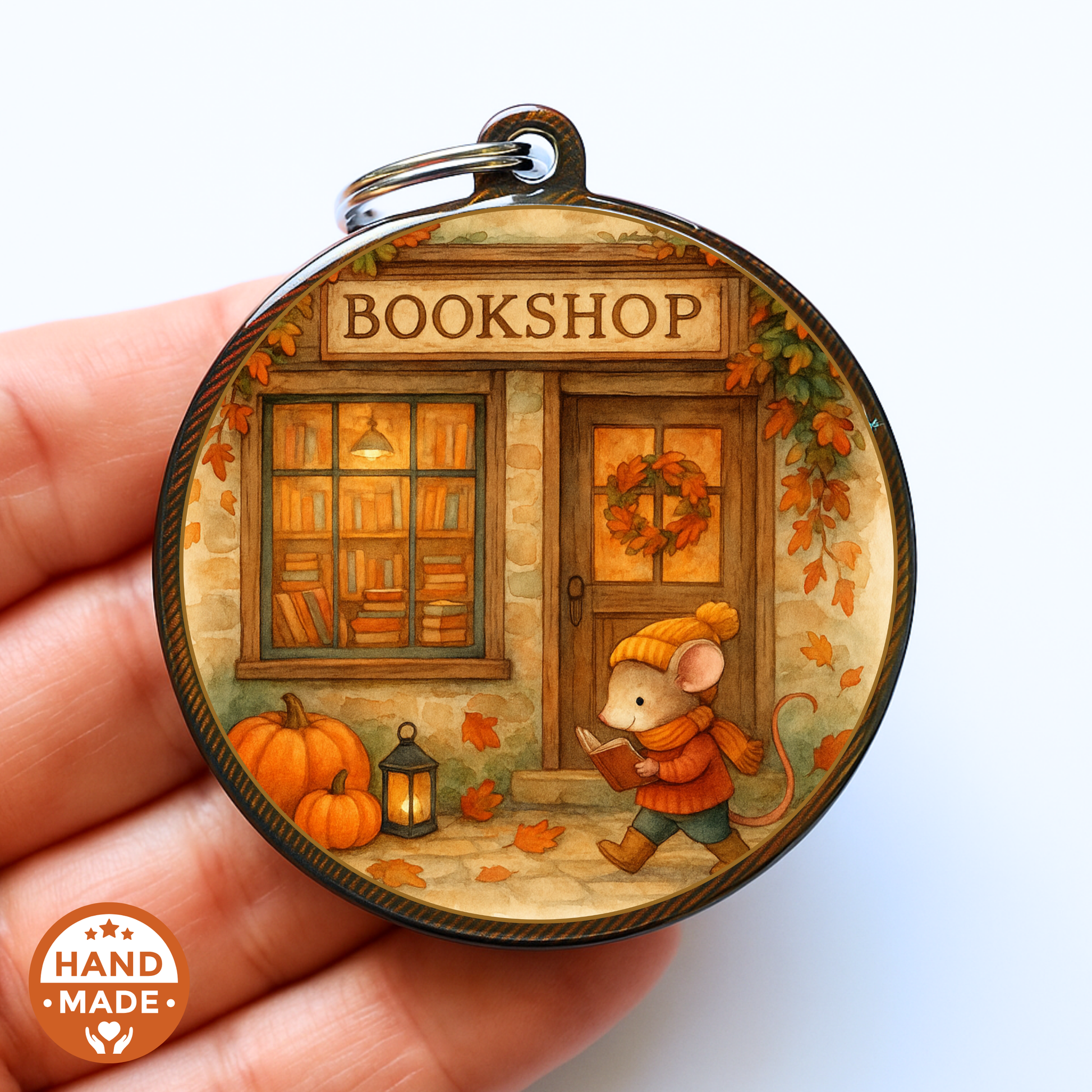 Mouse At The Bookshop | Woodland Critters | Autumnal Fall Scannable NFC Keychain