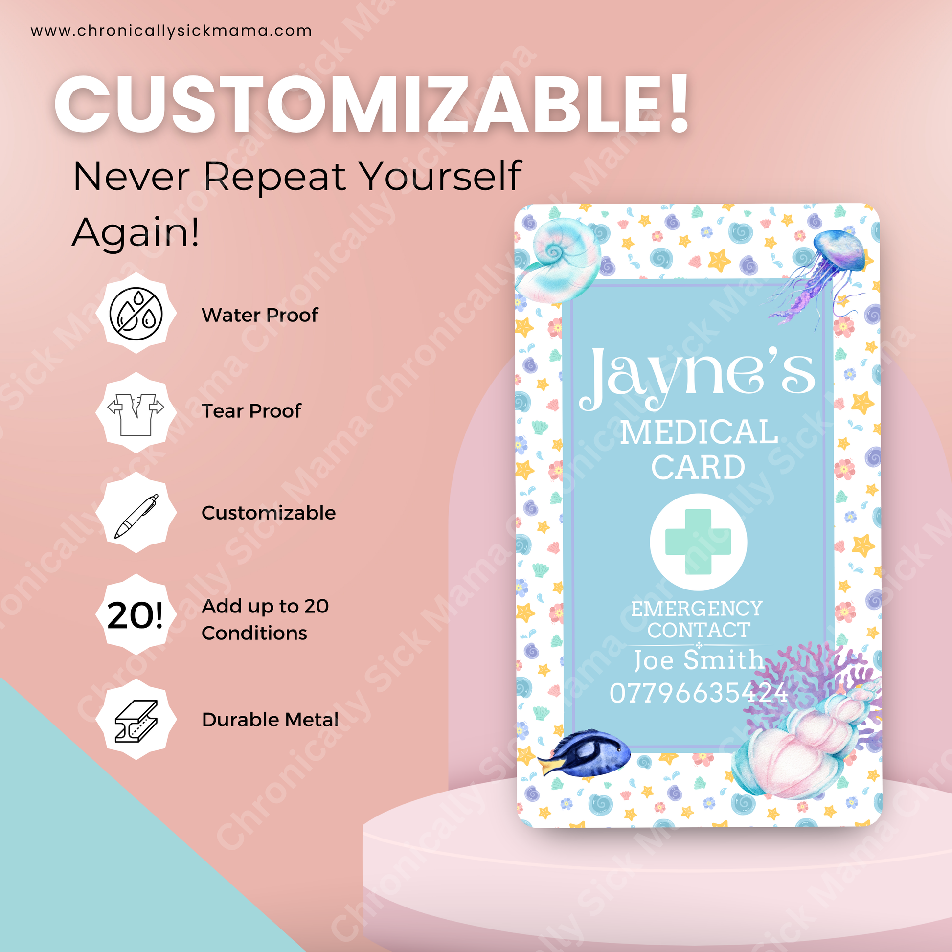 When seconds matter, clear medical info can make all the difference. These waterproof metal cards allow you to keep essential details like diagnoses, medication names, allergies or emergency instructions right where responders can find them — even if you're non-verbal or overwhelmed.