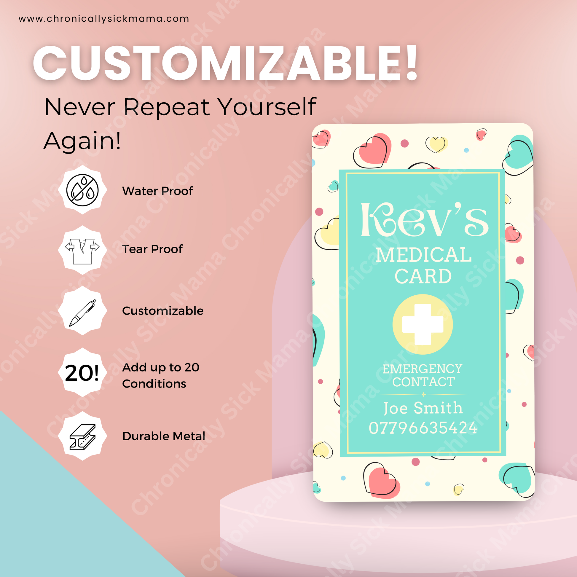 When seconds matter, clear medical info can make all the difference. These waterproof metal cards allow you to keep essential details like diagnoses, medication names, allergies or emergency instructions right where responders can find them — even if you're non-verbal or overwhelmed.
